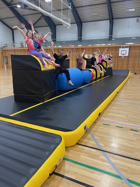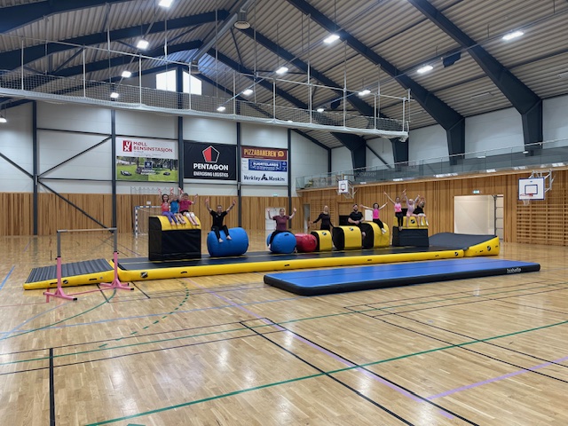 Vi fikk i 2025 støtte fra Flekkefjord Sparebank til innkjøp av nytt utstyr. Det har endelig ankommet! Vi er veldig fornøyd med både airtracks, kiler og skumbokser vi fikk fra vår leverandør: Quingdao Freeboard Industries. Både barn og voksne har prøvd det ut og er alle enige om at dette er gøy. 🙂 Spesielt Turn og Idrettskolen kommer til å bruke disse mye, men utstyret er her for alle grenene i Holum IL og for Holum skole.